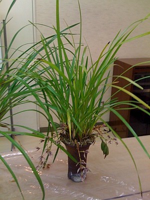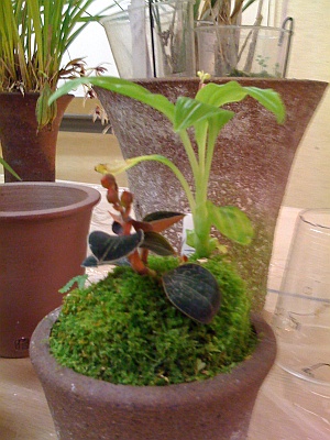宝石ランの鉢に オキナワヒメランが飛び込んだ |