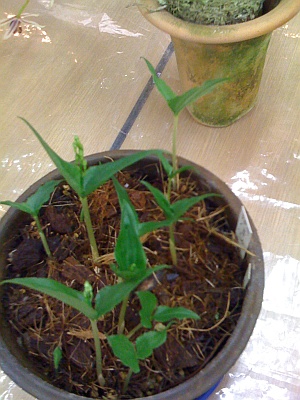 | アコウネッタイランの鉢の中に新芽が! この鉢には2年前に種を蒔いた 実生だといいな |