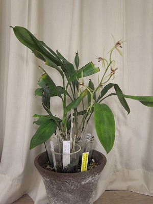 | 卓上の花 アキザキナギラン、ナンゴクネジバナ、ネジバナ(実生の縞斑)、ハツシマラン?