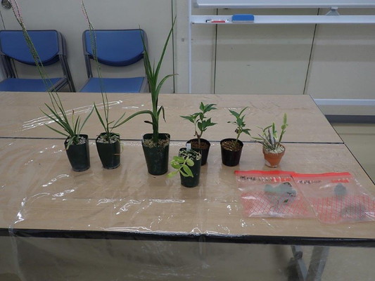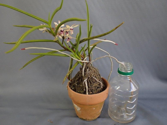 | ボウフウラン(ボウラン×フウラン) 水栽培 ペットボトルに水が入っている |